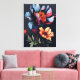 Ce design captivant présente des fleurs vibrantes et abstraites contre un arrière - plan bleu nuit dramatique. Une pièce unique et attrayante qui ajoutera une touche de sophistication moderne à toute maison ou bureau.