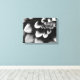 L'élégant imprimé en toile blanche et noire Fleur de Dahlia Fleur de Fleur de Fleur de Fleur de Fleurs ajoute un accent fleuri à la décoration de votre maison ou bureau. Ce joli imprimé botanique personnalisé présente une photo florale en noir et blanc d'un pétale de fleur de dahlia avec de minuscules gouttelettes d'eau.