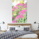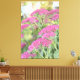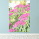 Impression sur toile de toile florale moderne étirée avec des fleurs de sedum rose fuchsia. Impression de couleurs chaudes de jardin.