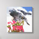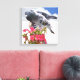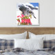 Cette magnifique toile enveloppée présente une photographie prise sur mon balcon d'une paire de pigeons assis sur le rail du balcon au-dessus d'un hangar coloré de géraniums roses.