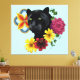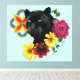 Portrait d'un chat en jaguar noir avec tuiles et fleurs mexicaines colorées.