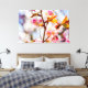Une vue rapprochée d'un bouquet ensoleillé de fleurs de sakura fraîches et roses ainsi que de bourgeons sur une brindille d'arbre. Le fond violet, bleu, blanc et rose pâle d'un ciel nuageux et de fleurs de cerisier. Une peinture numérique extra-large réalisée à partir d'une photographie. Impression sur toile étirée florale incroyable pour décorer votre espace ou pour être utilisée comme cadeau pour des mariages, des anniversaires, des baby showers ou tout autre événement. Vous pouvez transférer ce design sur une variété de produits abordables, y compris une impression sur toile enroulée fausse, une affiche, une œuvre d'art en acrylique, en métal, en bois, un triptyque, une tapisserie, une plaque avec chevalet, un bloc photo, un puzzle, une carte postale, des cartes plates et magnétiques, un aimant, une horloge murale, un coussin, des couvertures, un carreau de céramique, une boîte à souvenirs, un plateau à bibelots, un dessous de plat, des sous-verres de toutes sortes, des cartes à jouer. Il suffit de choisir le produit dans l'option déroulante "Transférer le design sur un produit". Ce design est ouvert à la personnalisation. Utilisez simplement le bouton "Personnaliser" ou "Modifier le design" (selon le cas) de couleur bleue, ou le lien "Détails" --> "Cliquez pour personnaliser