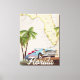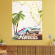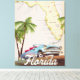 Magnifique carte illustrée de l'état de la Floride et des îles de la région dans un beau style vintage avec une voiture rétro des années 1950.