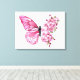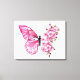 Flower arrangement of pink butterfly with rose Japanese cherry blossoms on white background.