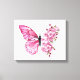 Flower arrangement of pink butterfly with rose Japanese cherry blossoms on white background.