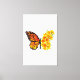 Orange, detailed monarch butterfly with wing decorated with yellow, vibrant California poppy on white background.
