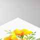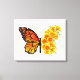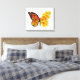 Orange, detailed monarch butterfly with wing decorated with yellow, vibrant California poppy on white background.