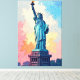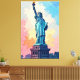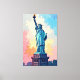 La Statue de la Liberté est haute contre un ciel vibrant, symbolisant la liberté et l'espoir avec une touche colorée.