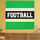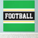 Ce design sportif coloré présente un texte en FOOTBALL audacieux à l'intérieur d'une large bande horizontale centrale noire avec des rayures blanches et jaunes dorées contre des rayures extérieures vertes. Le texte peut être personnalisé.