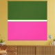 Ce design moderne contemporain présente un design vert forêt et rose audacieux, des moitiés unifiées avec une bande centrale blanche et nette qui s'étend horizontalement sur toute la longueur du design.