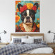 Un superbe tableau numérique représentant un Bulldog français, de style Frida Kahlo, avec une couronne florale vibrante et une tenue traditionnelle mexicaine. L'oeuvre mêle textures riches, couleurs audacieuses et détails complexes, capturant l'essence de l'artiste emblématique d'une manière unique et charmante.