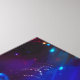 Lion majestueux à crinière bleue éclatante, debout fièrement sur fond de galaxie, rayonnant de puissance et d'élégance cosmique.