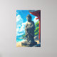Un moment de beauté sereine avec cette oeuvre d'une statue de Bouddha debout paisiblement au bord de la mer. L'image capture un sentiment de tranquillité car la statue surplombe une plage calme, avec à proximité une porte de temple japonais traditionnel et un ciel magnifique au-dessus. C’est une pièce parfaite pour apporter un sentiment de paix et de calme spirituel dans n’importe quel espace.