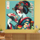 Cette toile captivante capture une geisha réfléchie tenant un éventail délicat, rendue dans le style traditionnel de peinture Ukiyo-e. Parfait pour les amateurs de culture japonaise et d'art historique, il apporte une touche d'élégance et de contemplation dans n'importe quel espace.
