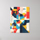 Impression de toile frappante avec des formes géométriques en gras rouge, bleu, jaune et noir. L'équilibre des cercles, des lignes et des angles crée une harmonie abstraite moderne qui ajoute profondeur et sophistication à toute pièce.