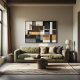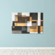 Art abstrait géométrique combinant des rectangles et des formes subtiles en noir, blanc, gris et or métallisé. La composition structurée évoque l'architecture moderne avec des textures industrielles. Parfait pour une décoration contemporaine recherchant la sophistication, l'équilibre visuel et une touche de luxe discret.