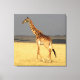 Girafe plein corps marchant dans l'herbe de l'Afrique. Beaux taches et queue qui coulent derrière. Animal majestueux.