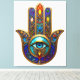 Toile Gold Colorful Hamsa Turquoise Sapphire Third Eye