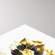 Or flower butterfly with black jewelry orchid, decorated with gold leaves on white background.
