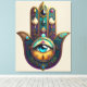 Toile Gold Violet Teal Hamsa w/ Turquoise Third Eye