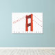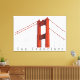 Une photo de fond capture la tour rouge emblématique du pont du Golden Gate. La structure complexe de la tour est visible, avec ses supports verticaux et ses poutres horizontales. Les câbles de suspension du pont, faits de nombreux fils minces, s'étendent de la tour, créant un motif de lignes verticales contre l'arrière - plan blanc.