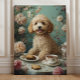 Toile Goldendoodle Chien Thé Vintage
