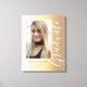 Graduation Gold Stylish Script Modern Photo Graduation Canvas Print feas a gold shunterground with your custom photo. Personalize by adding your name, school, college or university and class year by editing the text in the text boxes provided. Designed for you by ©Evco Studio www.zazzle.com/store/evcostudio