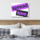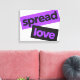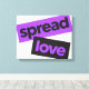 Design typographique moderne, simple, dynamique et ludique d'un dicton "Spread Love" aux couleurs violet et noir. Cool, urbain, tendance et audacieux graphisme