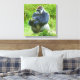 Ce gorille semble être dans une profonde réflexion sur son régime alimentaire alors qu'il doigte une feuille de laitue sur cette toile enveloppée.