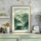 Create a peaceful and calming atmosphere with this misty green mountain landscape art. Inspired by soft watercolor textures and serene natural scenery, this design brings a sense of tranquility and depth to your space.