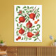 Des branches de grenade aux feuilles luxuriants et aux fruits rouges riches s'étendent sur un arrière - plan noir. Un calque secondaire s'estompe subtilement, ajoutant de la profondeur. Traditionnellement peints sur du papier avec des marqueurs, les éléments sont scannés et composés en motif dans Photoshop.