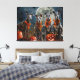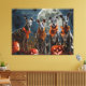 Libérez l'esprit effrayant avec ce design effrayant d'Halloween mettant en vedette une meute de chiens sous un ciel sombre éclairé par la lune, entourés de chauves-souris volantes et de citrouilles lumineuses. Parfait pour ceux qui aiment un peu de plaisir effrayant avec leurs amis à fourrure !