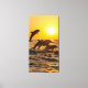 groupe de dauphins saute joyeusement des vagues sur fond de coucher de soleil doré