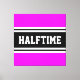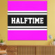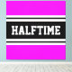 Ce design sportif et sportif présente un texte HALFTIME audacieux à l'intérieur d'une large bande noire surlignée avec deux bandes blanches contre un arrière - plan rose tropical lumineux. Le texte de cette conception peut être personnalisé.