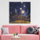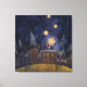 Décorez votre maison avec un peu de fantaisie avec cette peinture en toile de scène originale de la nuit d'une fille debout sur le toit d'un rocher à New York avec son chien accroché étoiles dans un ciel bleu minuit. Toute personne qui aime l'art fantaisiste, les gratte-ciel de la ville et New York City appréciera cet art sur son mur.