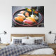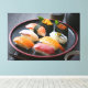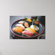 Bring the essence of Japanese elegance into your space with this stunning canvas art featuring a selection of beautifully presented sushi on traditional black plates. From luminous salmon and tuna to rich sea urchin and vibrant salmon roe, each piece speaks volumes of craftsmanship and freshness. Perfect for any sushi lover looking to elevate their kitchen, dining area, or decor.