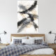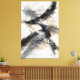 Confident, gestural brushstrokes cut across soft ink washes, creating a charged dialogue between motion and restraint. Warm bone tones breathe through layers of deep charcoal and muted slate, allowing negative space to hold as much weight as the marks themselves. Texture is deliberate and refined—suggestive of paper and time—scaled for clarity at an expansive, architectural size. The composition balances intuition and control, capturing a moment where energy settles without ever fully resting.