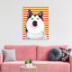Belle peinture murale de chien, rayures rouges et jaunes et joyeux dessin huilé. Décor intérieur pour tous les amateurs de coquine.