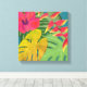 Donnez de la couleur et une touche unique à votre maison avec cette belle et colorée impression de toile. Le design est composé de feuilles de palmiers tropicaux avec des fleurs d'hibiscus et d'hélionia.