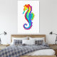 Artistiquement dessiné, lumineux, arc-en-ciel, cheval de mer polygonale sur arrière - plan blanc. Un tatouage brillant.