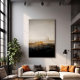 Un paysage urbain éthérée, enveloppé de brume et de lumière dorée. De grands bâtiments se dissolvent au loin, créant un sentiment de mystère et de nostalgie. Une oeuvre qui évoque la beauté de l'impermanence et la puissance du temps.