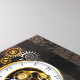 Cadran d'antiquités avec or et lances en laiton, décoré de libellules mécaniques sur arrière - plan brun rayé. Steampunk.