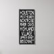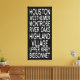 Voici une liste de quelques-uns des endroits les plus reconnus dans la ville de Houston, Texas en Typographie d'un blanc moderne sur arrière - plan noir classique. Westheimer est l'endroit où se trouvent les hôtels et les grands magasins, Montrose est le quartier artistique, River Oaks est l'endroit où vivent les riches et célèbres, Highland Village est pour les magasins et les boutiques de luxe, Upper Kirby est la rue d'élite et Bissonnet est le quartier des musées.