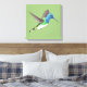 Dessin numérique coloré d'un colibri Jacobin au cou blanc, mignon, petit, bleu et vert vif, sur un arrière - plan vert sage. L'image est transparente. Vous pouvez modifier l'arrière - plan, le nombre d'images et la taille de l'image. Saviez-vous que les colibris prennent environ 250 souffles par minute, que leur coeur bat environ 1200 fois par minute, et que leurs muscles de l'aile représentent environ 30% de leur poids corporel total ?