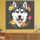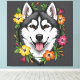 Toile Husky Sled Dog And Colorful Mirablis Flowers