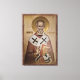 Icon of the Saint Nicholas. Beautiful design of the icon of the Saint Nicholas with a wood-colored frame and letters printed in gold.