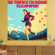 Vous n'êtes pas en train de nettoyer à la maison, vous êtes en train de mettre les intervalles. Ce design amusant montre une femme à l'allure désuète courant dans les montagnes dans le style d'une affiche de voyage vintage.