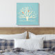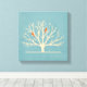 Impression de toile avec un arrière - plan vert muet superposé est un arbre jaune clair avec 2 silhouettes d'oiseau orange sur les branches.