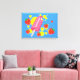 Une impression de toile avec un thème estival. Conçu avec du popsicle rose et quelques fraises rouges qui tombent autour du popsicle avec quelques éclaboussures de peinture jaune. Arrière - plan bleu.