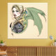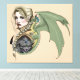 Un elfe guerrier blonde aux cheveux bruns portant une armure bijouterie. Un petit dragon vert s'assied sur l'épaule de l'elfe blonde.